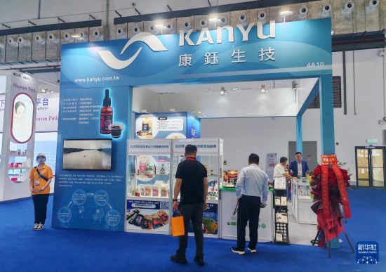4月14日在第五届消博会上拍摄的台湾康钰生化科技股份有限公司展位。新华社记者 严钰景 摄