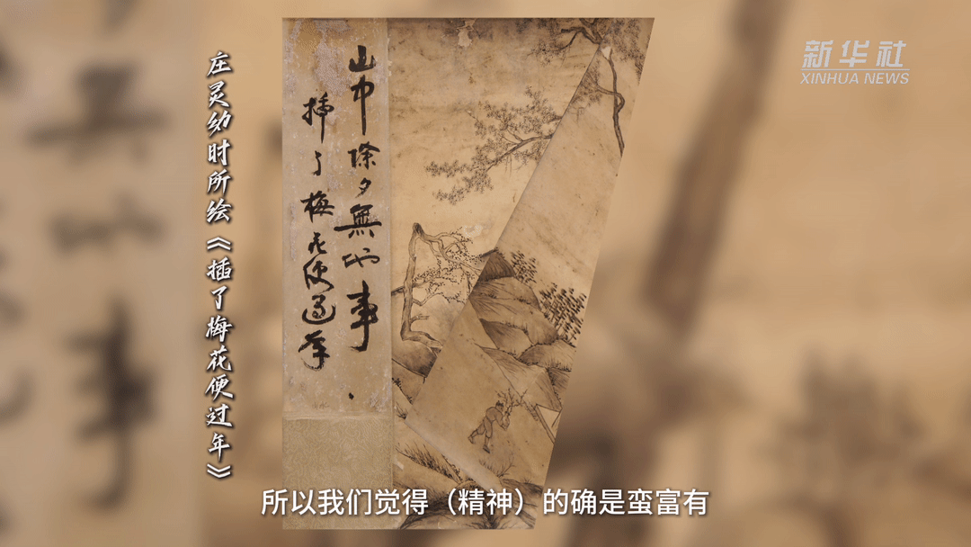 到了春节,庄严会从野外折梅几枝,带孩子们写春联:“山中除夕无他事,插了梅花便过年”。