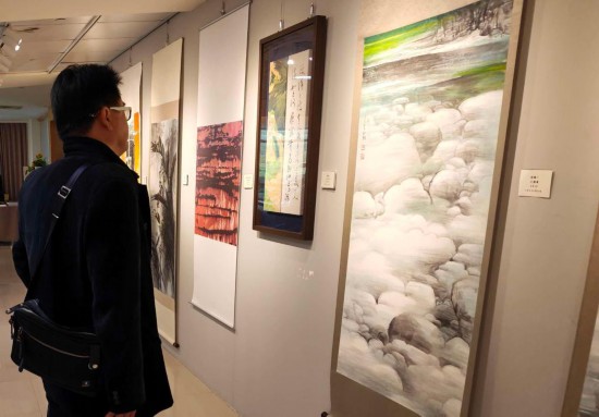 参展的台湾艺术家多来自台湾艺术大学、台湾艺术学会、新北市新庄书画会等岛内知名书画机构。他们的作品包罗万象,既有《苏东坡临江仙词》等浸润古典韵味的书法力作,也有《宝岛太鲁阁胜境》等描摹岛内风光的佳作,还有《古漕·徐州·印象》等绘就大陆美景的精品,横跨古今、纵览两岸,展现多元创作视野。